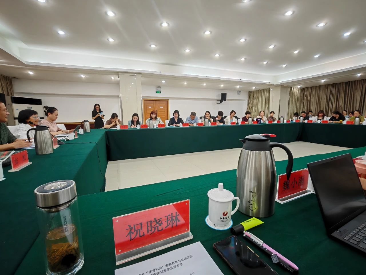 8号晚上,河南省家庭教育学会、河南省妇女儿童发展中心还组织了河南省“豫宝妈妈”家庭教育公益巡讲活动座谈交流会,学员们分别围绕“爱心妈妈”结对关爱志愿服务活动、“豫宝妈妈”家庭教育公益巡讲活动进行座谈交流,祝晓琳博士作为代表进行了重点发言和经验交流,受到大家好评。