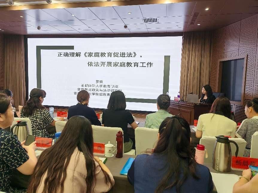 来自中华女子学院、首都师范大学、北京师范大学的四位专家分别以《深入学习领会习近平总书记关于注重家庭家教家风建设重要论述 推进新时代家庭建设工作》《正确理解<家庭教育促进法> 依法开展家庭教育工作》《儿童心理发展特点及家庭教育对策》《建设滋养型家庭环境 促进青少年健康成长》为主题进行了专题讲座。