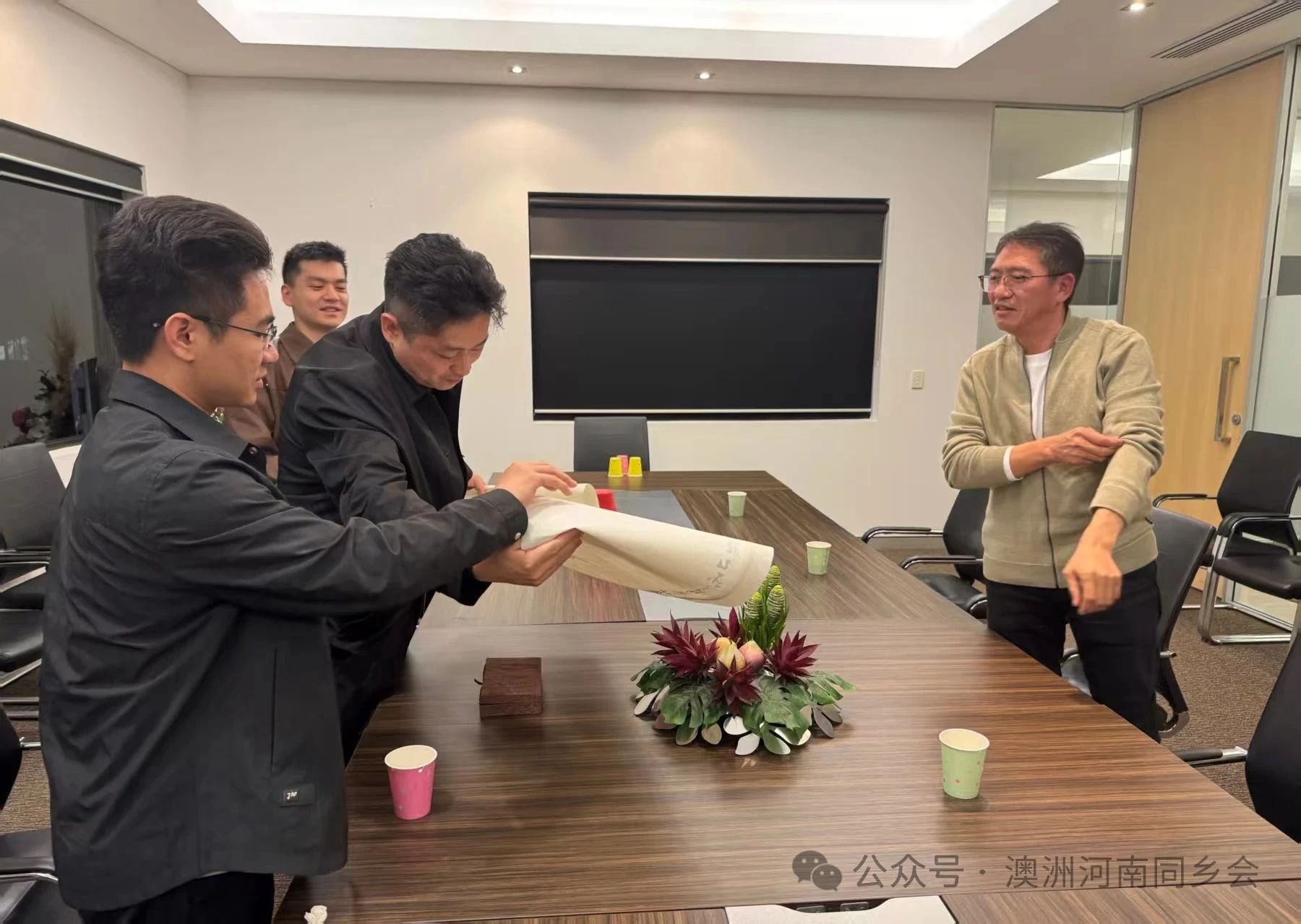 为表达两会间深厚的情谊和对未来合作的美好祝愿,座谈结束时举行了简朴而隆重的礼物互赠仪式。胡鲲鹏会长代表本会向昆士兰河南同乡会赠送了精心准备的、象征友谊与祝福的工艺珍品。昆士兰河南同乡会樊一会长亦代表昆州乡亲回赠了纪念礼物。礼物虽轻,情义深重,寄托着两会同心同德、携手并进的坚定信念。