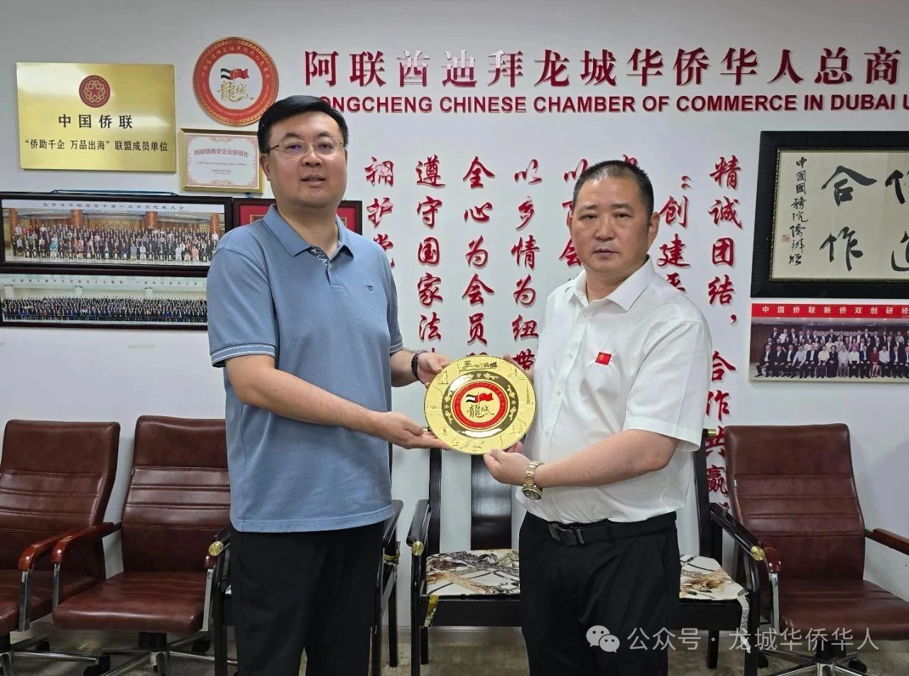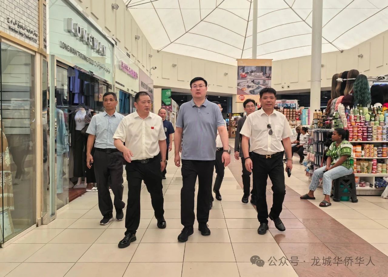 7月30日,在阿联酋迪拜龙城华侨华人总商会会长金国中陪同下,浙江省台州市副市长程炜博一行实地考察了迪拜龙城市场,并与商会代表举行座谈会。