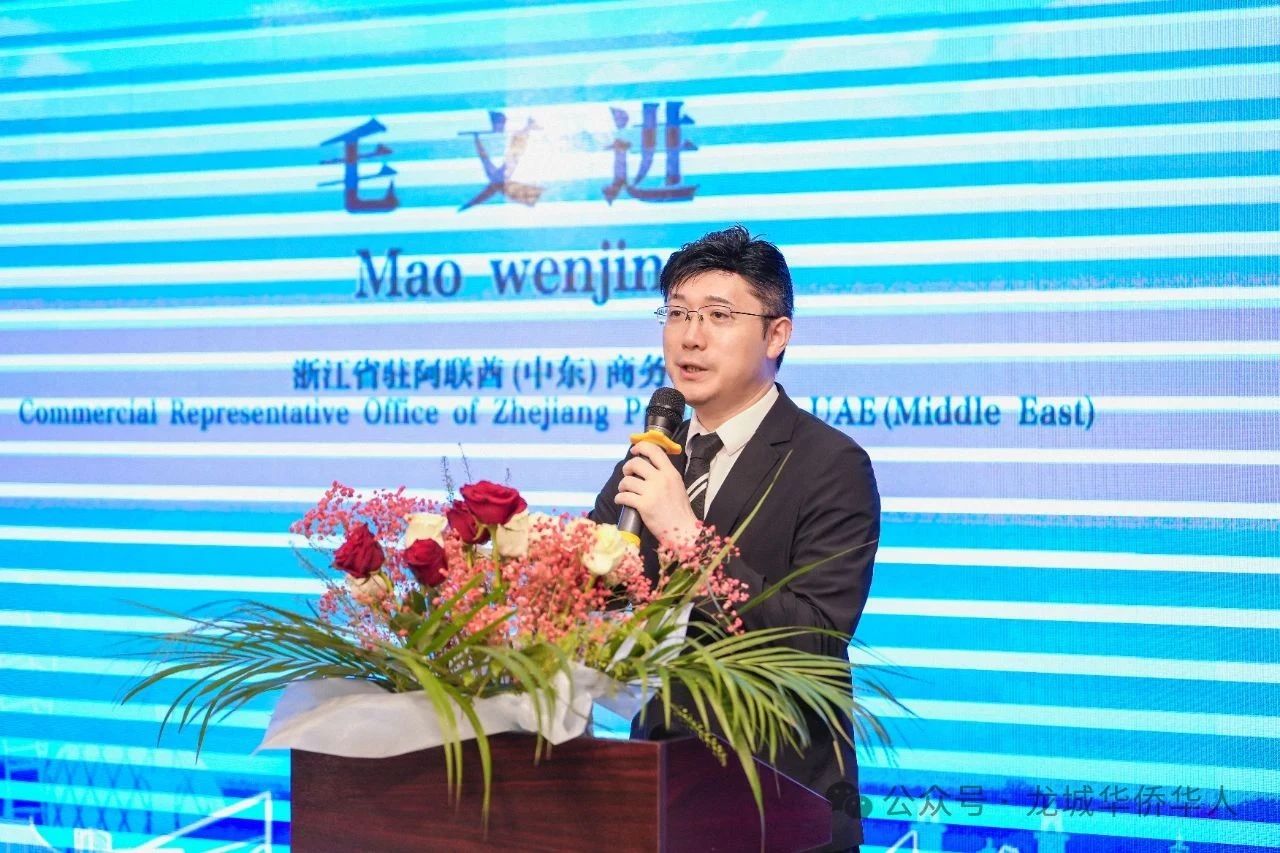 浙江省驻阿联酋(中东)商务代表处商务代表毛文进在致辞中对台州市与阿联酋的经贸与投资合作提出了三点展望:一是台州作为制造业强市,汽车零部件、阀门等制造业与迪拜“D33愿景”战略契合,可深化技术协作、共享发展机遇;二是依托台州综保区、国家级经开区等开放载体,拓展与阿联酋在新能源、医疗器械等领域合作,拓宽投资渠道;三是建议台州通过“省市共建机制”派驻专职人员,并组织企业分批赴阿联酋开展精准对接,代表处将提供全流程支持和务实化路径。