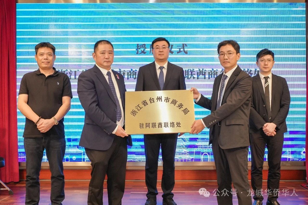 推介会现场,“台州市商务局驻阿联酋联络处”正式授牌设立,落地阿联酋迪拜龙城华侨华人总商会。商会将成为台州深耕中东市场的“前哨站”,为外贸企业提供市场拓展、政策咨询、投资对接等本土化服务,赋能企业出海。