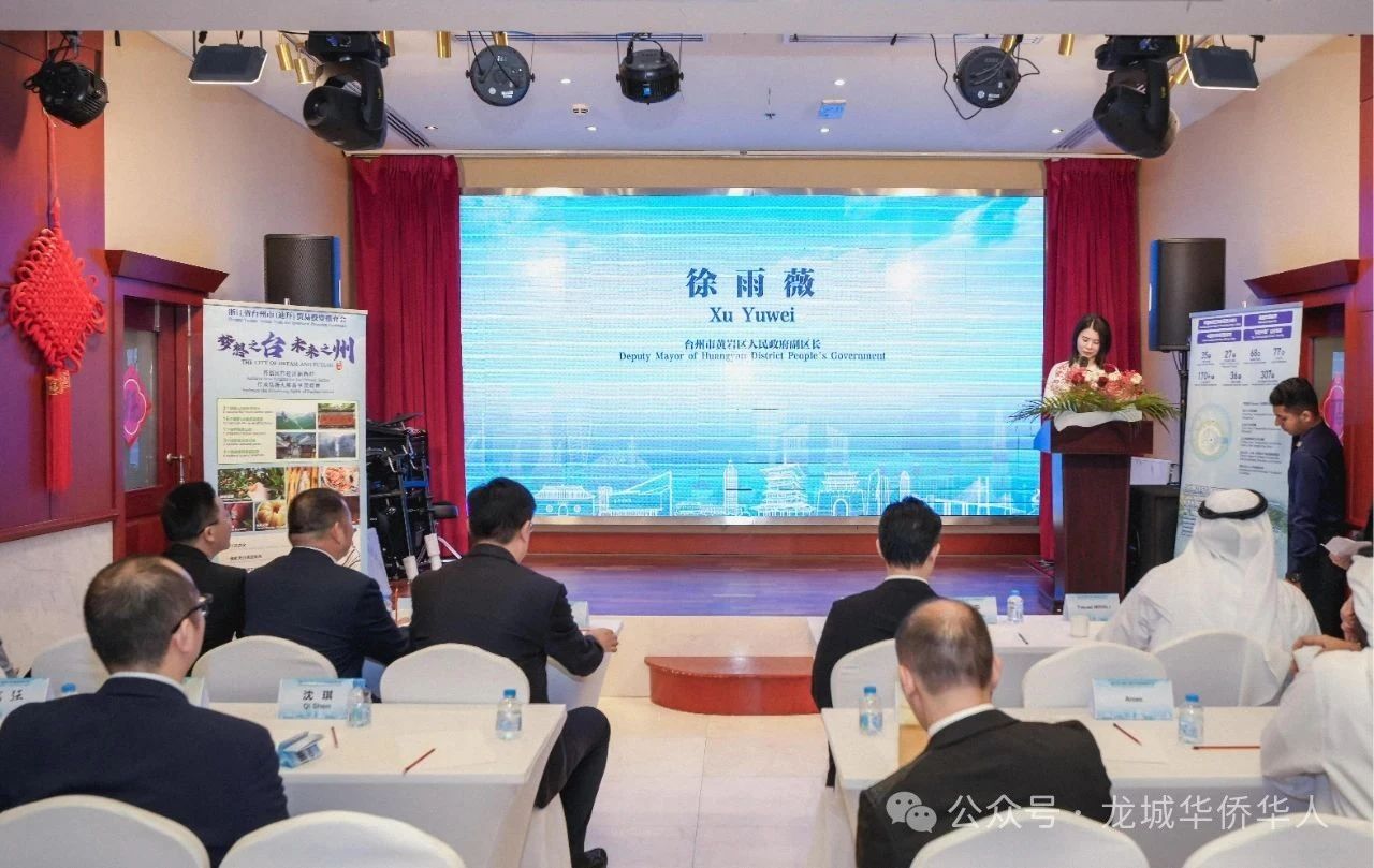 7月29日下午,由浙江省台州市人民政府主办、迪拜龙城华侨华人总商会协办的“浙江省台州市(迪拜)贸易投资推介会”在迪拜成功举办。台州市副市长程炜博、市府办副主任林敬萍、市文广旅体局副书记、副局长王超、市商务局四级调研员金渝迦,椒江区副区长孙天波、黄岩区副区长徐雨薇,浙江省驻阿联酋(中东)商务代表毛文进,河南省侨商联合会海外顾问、迪拜龙城总商会会长金国中以及阿联酋皇室成员、政商界人士、企业代表、侨团负责人等出席?;疃殖⊥浇遗瞥闪?ldquo;台州市商务局驻阿联酋联络处”,标志着台州深耕中东市场迈出关键一步。