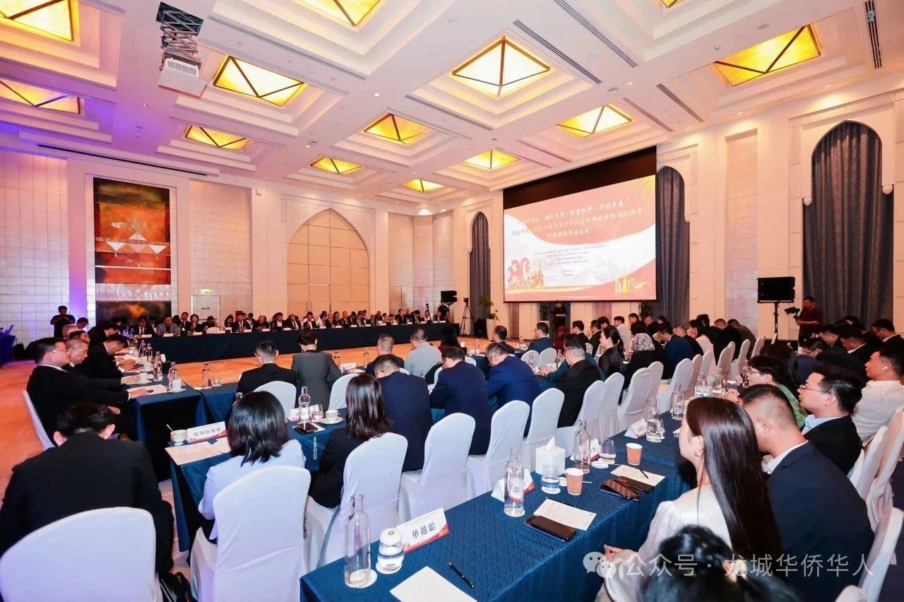 2025年8月15日下午,由阿联酋中国和平统一促进会、阿联酋中华工商总会、阿联酋上海总商会暨同乡会、阿联酋华侨华人联合会、阿联酋华侨华人妇女联合会联合主办的“铭记历史·缅怀先烈·珍爱和平·开创未来——纪念中国人民抗日战争暨世界反法西斯战争胜利80周年座谈会”在迪拜香格里拉大酒店隆重举行。中国驻阿联酋大使张益明、中国驻迪拜总领事欧渤芊、香港驻迪拜经济贸易办事处处长陈尚文,驻阿使领馆代表、阿联酋60余家侨团负责人、香港和台湾同胞代表、留学生代表以及各界嘉宾逾百人齐聚一堂,缅怀历史、共话和平。河南省侨商联合会海外顾问、阿联酋迪拜龙城华侨华人总商会会长金国中应邀出席并发言。