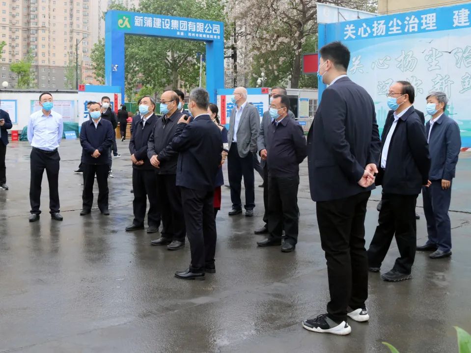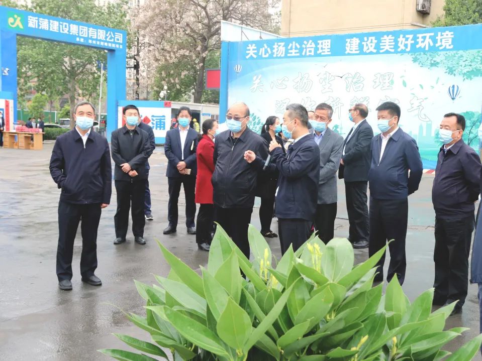 4月12日上午,郑州市人大常委会主任胡荃,郑州市人大常委会副主任张春阳,中原区人大常委会主任薛晓军,中原区区委常委、常务副区长刘斌等一行领导,莅临新蒲建设集团在建的朗晴别院项目视察施工工地扬尘污染防治工作,新蒲建设集团董事长王建峰,新蒲置业有限公司副总经理赵玉森,工程部经理袁睿,办公室主任李余陶等相关领导陪同视察。