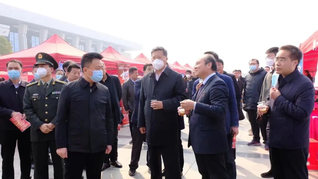 仪式结束后,刘江副市长、河南省退役军人事务厅二级巡视员苏斌副厅长以及市退役军人事务局李海源局长、张金山副局长、陈晓忠副局长、市军分区政治工作处上校胡彬兵主任等领导,参观并考察了京德酒业有限公司的项目展示。