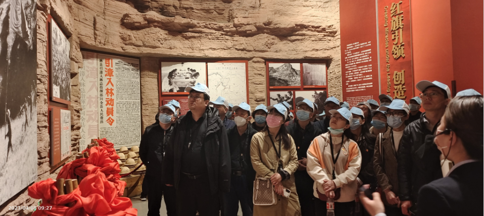 全体人员首先来到红旗渠纪念馆,通过讲解员的讲解,了解到当地修建红旗渠的背景和“人工天河”名称的来源。一幅幅珍贵的历史照片,再现了当年勤劳勇敢的十万林州人民,苦战十个春秋,一锤一镐,用双手在悬崖峭壁的太行山上修造的1500公里的“世界第八大奇迹”。林州人民用勤劳的双手结束了十年九旱、水贵如油的苦难历史,创造了享誉全国的红旗渠精神,激励了一代又一代人。