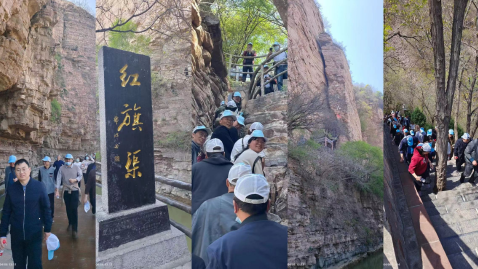 参观完分水苑后,全体人员来到红旗渠咽喉工程——青年洞,走在紧贴着山崖凌空而建的栈道上,步行的困难让大家真切的体会到当年施工的难度,红旗渠所展现的辉煌和气势让所有人震撼,《红旗渠铁姑娘》、《凌空除险》的表演,给全体人员留下了深刻的印象。林县人民不屈不挠的红旗渠精神,更是洗涤了大家的心灵。