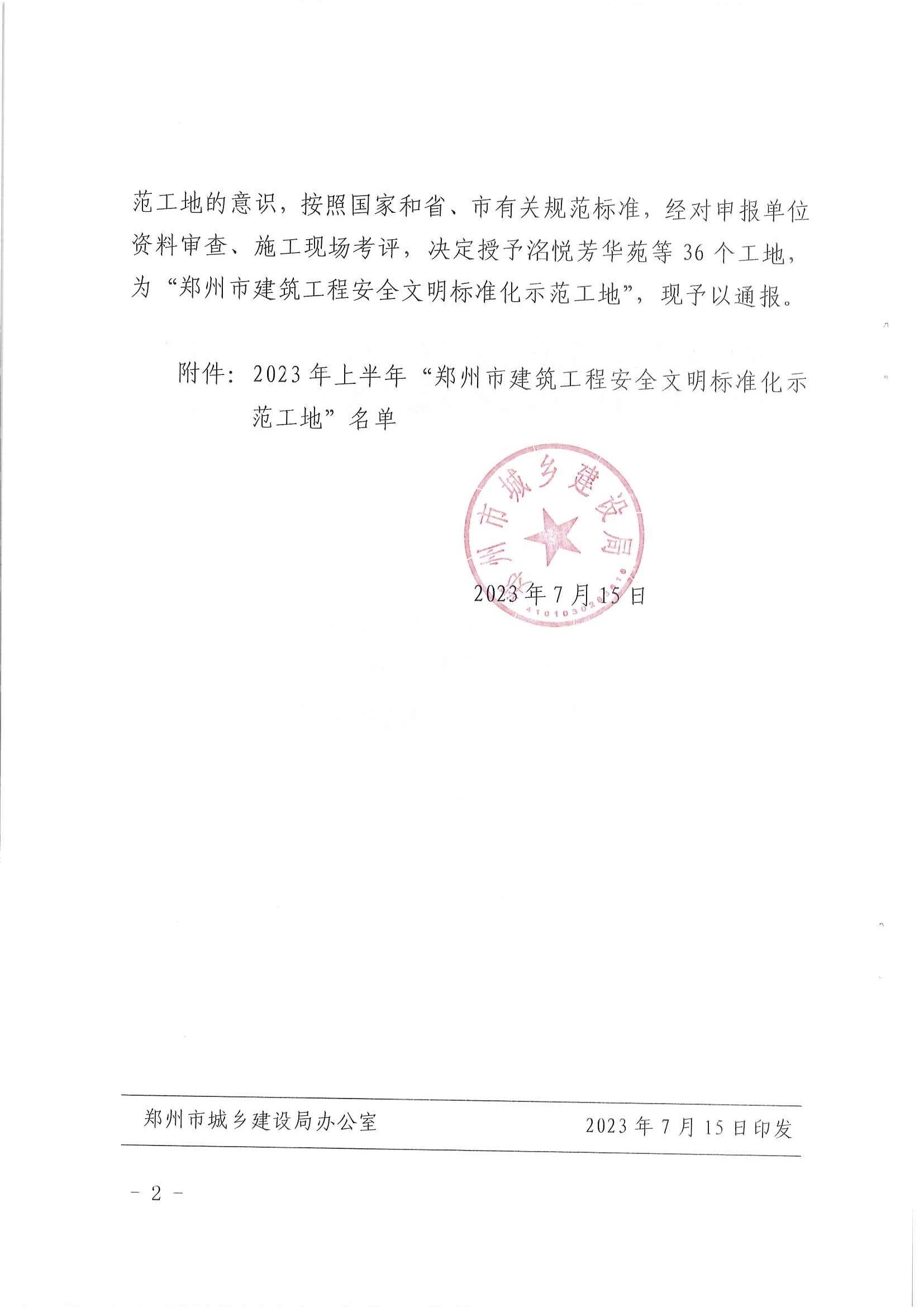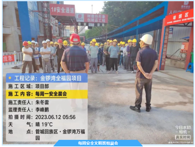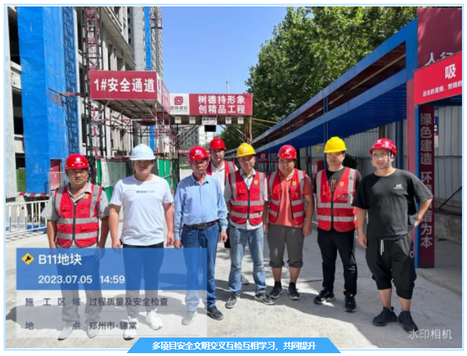 我会副会长单位世茂集团河南区域项目世茂云尚城薇海园(备案名:源升金锣湾全福园)自开工建设以来,为深入推进安全生产标准化建设,提升建筑施工本质安全水平,在郑州市建设主管部门领导的大力支持下,建设、施工、监理单位众志成城,竭尽全力,克服行业内卷动荡、场地狭小等重重困难,对安全防护、机械设备、现场消防、临时用电、文明施工、治安保卫、职工劳动保护用品、安全教育培训、安全技术交底等多项安全管理工作的持续推进,通过傻瓜式、清单式、穿透式的管理思路,将现场安全文明工作落实到每一个人,并最终于2023年7月15日被评为2023年上半年郑州市建筑工程安全文明标准化示范工地。