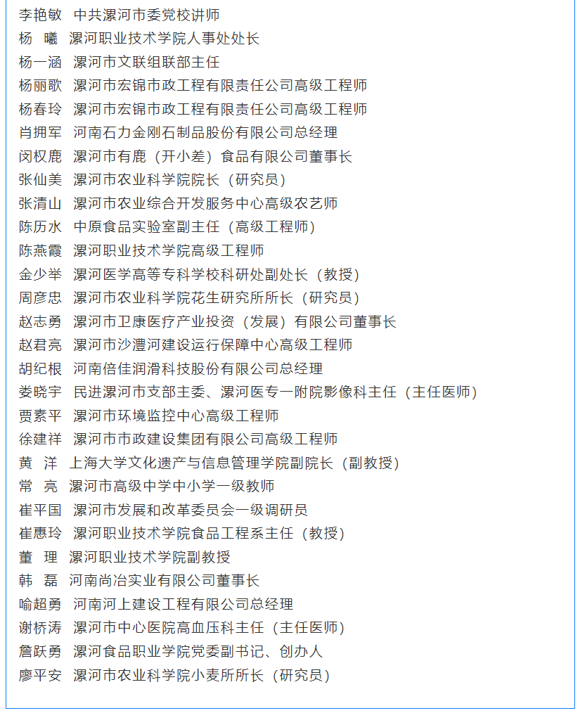 附件:漯河政协智库成员名单