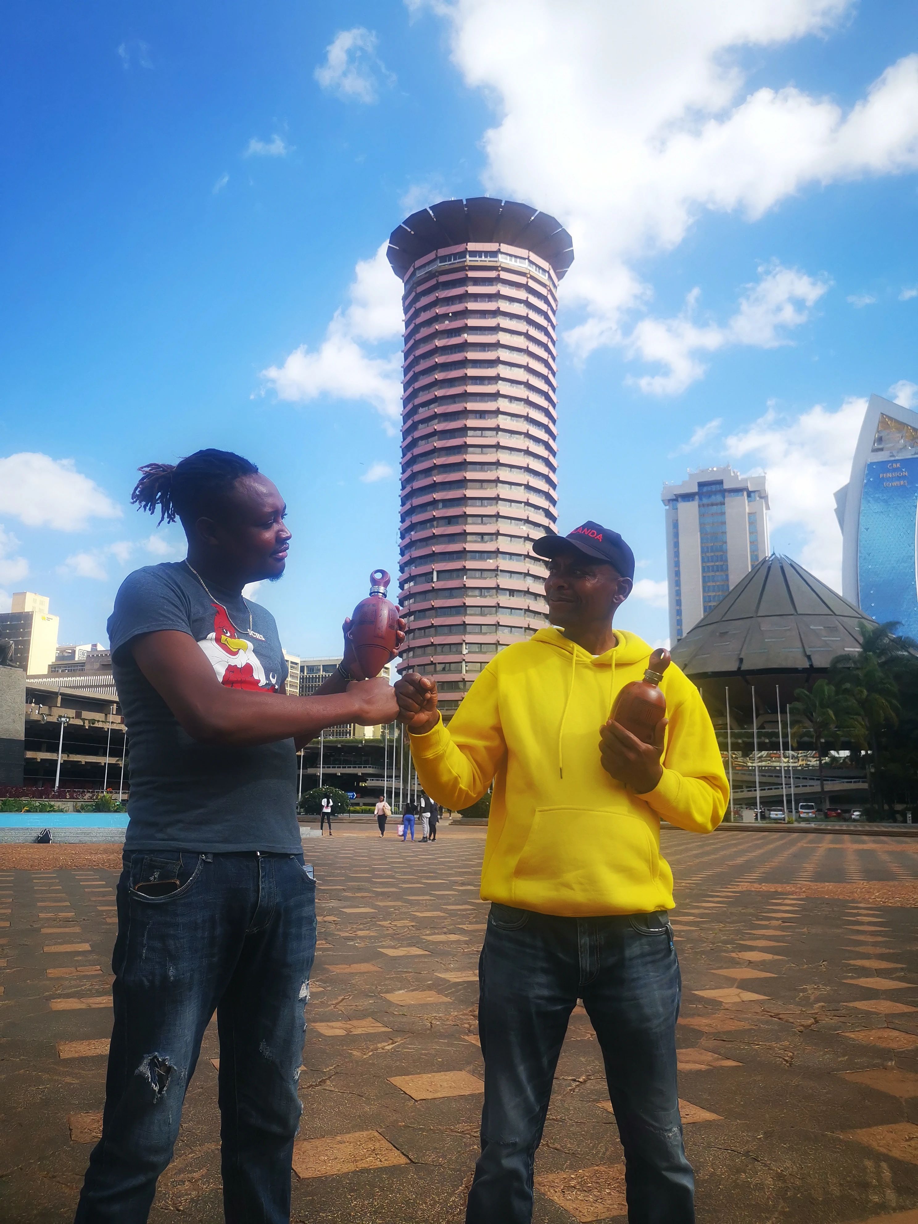 近日,肯尼亚友人带着小口尖底瓶打卡东非肯尼亚首都内罗毕的“东非第一高楼GTC”和“肯雅塔国际会展中心”。7000年前,小口尖底瓶上镌刻的精美纹饰,掀起了史前中国的第一次艺术浪潮;7000年后,小口尖底瓶在人类文明发源地之一的肯尼亚,共同绘就了美美与共的人类文明与艺术画卷。