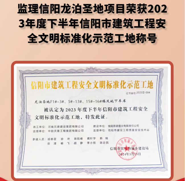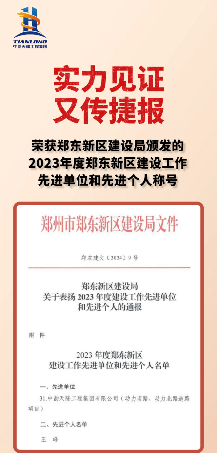 【会员动态】省侨商会副会长单位中韵天隆工程集团荣获郑东新区建设工作先进单位;信阳市建筑工程质量标准化示范工地、安全文明标准化示范工地