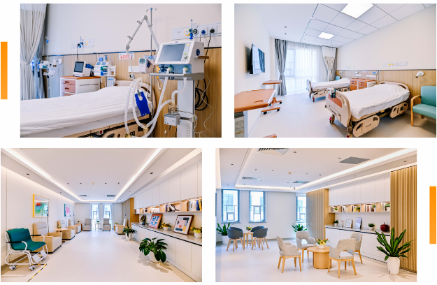为了给患者创造良好的就医体验,豫园康复医院充分融合国际化先进的医养与适老设计理念,全院采用无障碍、防跌倒设计,为轮椅患者设置了低位开关、专用接待窗口等,保证就医安全和便捷。空间设计以人本关怀为原点,典雅明亮的大厅、简约舒适的沙发、整洁宽敞的病房等营造出温馨、舒适的就医环境。此外,医院还增加了室外空中花园、文化活动中心等公共活动空间,便于患者休憩放松。