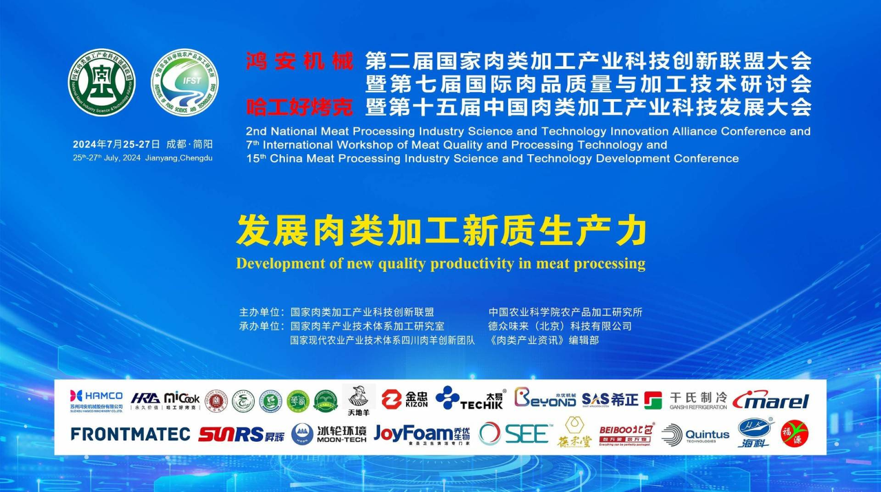 本次大会在四川省举办,大会以“发展肉类加工新质生产力”为主题,研讨国内外肉类科技与产业态势,形成合力、共促发展。以科技创新为引领,加强科技创新和产业创新深度融合,巩固肉类产业已有优势,发展新动能新业态,保障高品质肉品生产与供给,实现肉类加工产业高质量发展。
