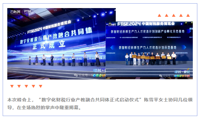 本次峰会上,“数字化财税行业产教融合共同体正式启动仪式”陈雪平女士协同几位领导,在全场热烈的掌声中隆重揭幕。