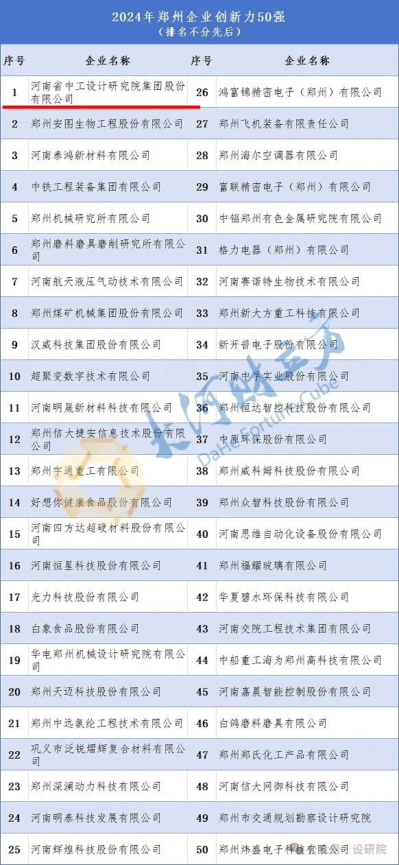 河南省中工设计研究院股份有限公司的此次登榜,不仅是对设研院过去不懈努力的认可,也是对未来发展的激励。设研院将持续秉持创新精神,加强与行业同仁的合作,为郑州乃至河南省的经济社会发展贡献更多的智慧和力量!今天的设研院正以满腔的热情和坚定的斗志,朝着成为中国领先的工程技术综合服务企业的目标奋勇前进!