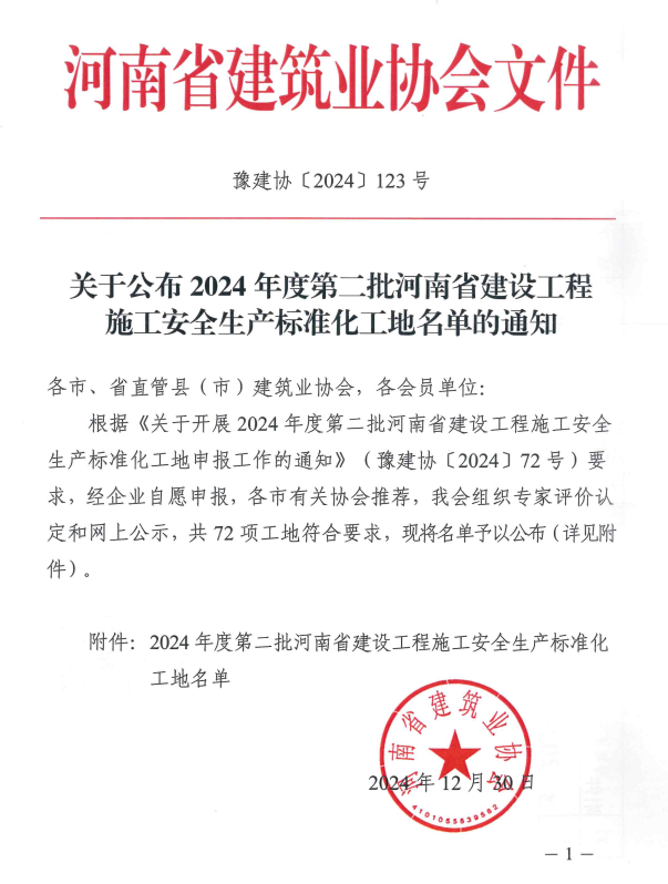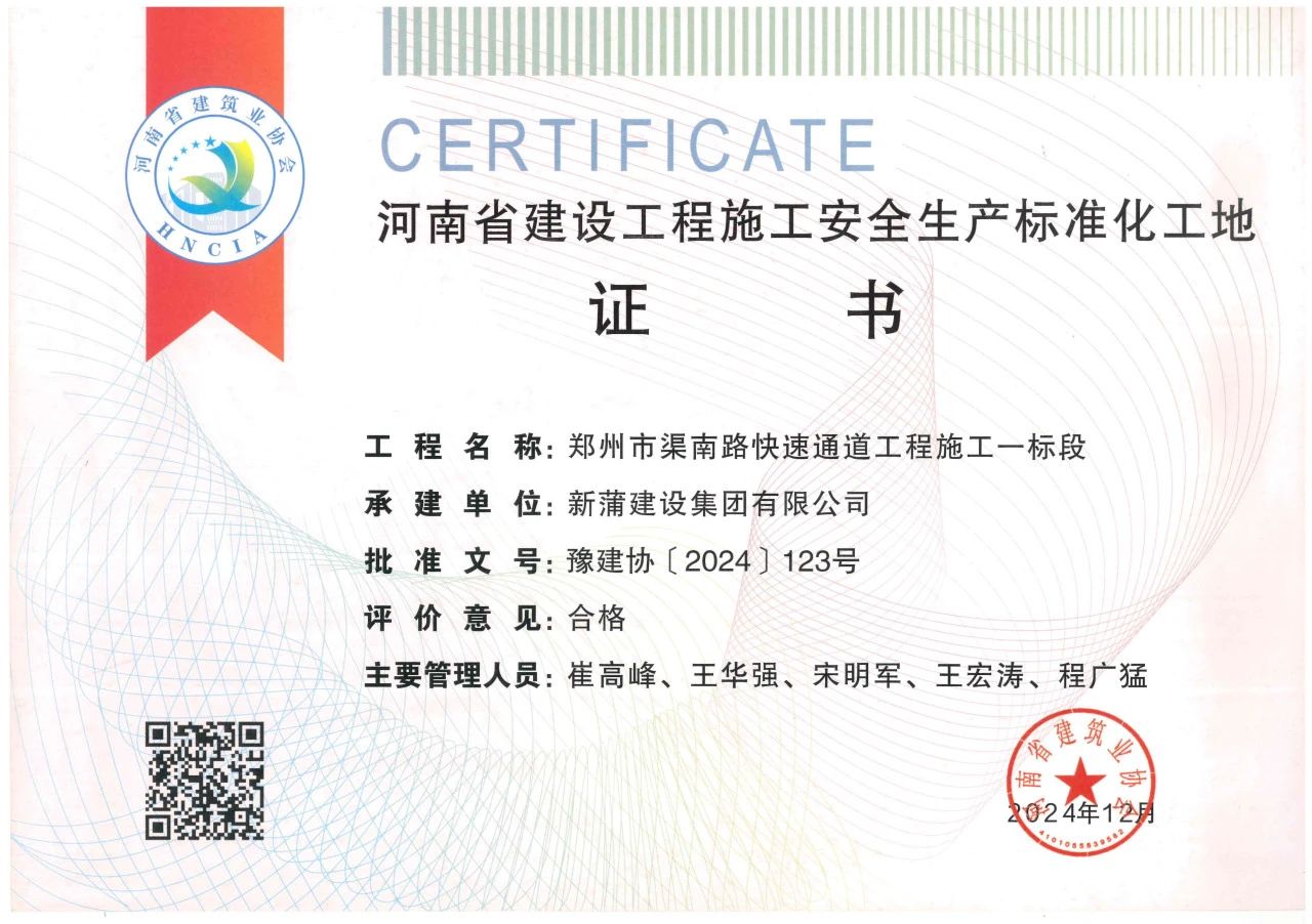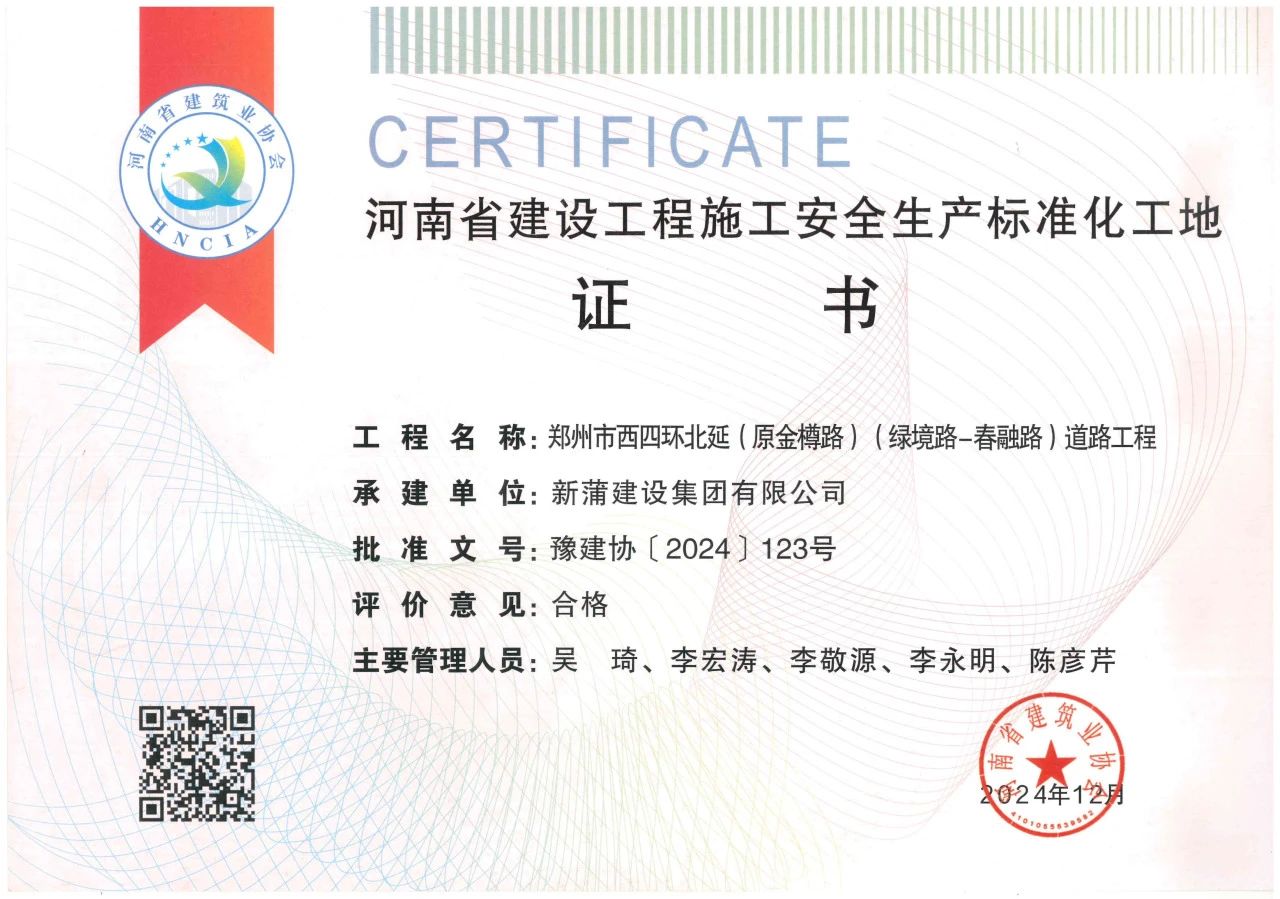 近日,从河南省建筑业协会传来一则喜讯。在其公布的2024年度第二批河南省建设工程施工安全生产标准化工地名单中,新蒲建设集团承建的两大工程榜上有名,这两项工程分别为