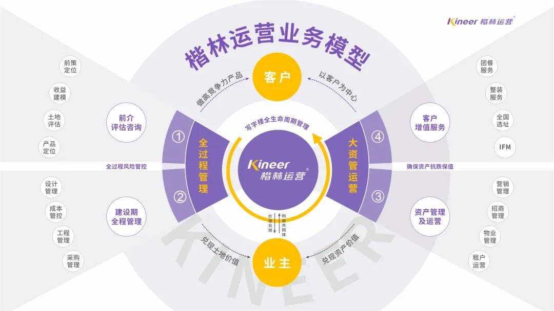 楷林运营以卓越的全链整合能力,从前介评估到代建管理,从资产运营到终端增值服务,构建商办全生命周期管理链条,实现风险闭环管控,确保资产抗跌保值。作为政企信赖的“价值共同体”,楷林始终坚持以客户为中心,持续赋能商办资产价值跃升与城市经济动能焕新。
