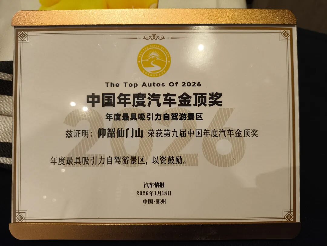 1月18日,在“中国汽车产业生态共同体峰会暨第九届中国年度汽车金顶奖颁奖盛典”上,仰韶仙门山景区荣获“年度最具吸引力自驾游景区”奖项。这是仙门山景区连续第二年在中国年度汽车金顶奖评选中斩获殊荣。