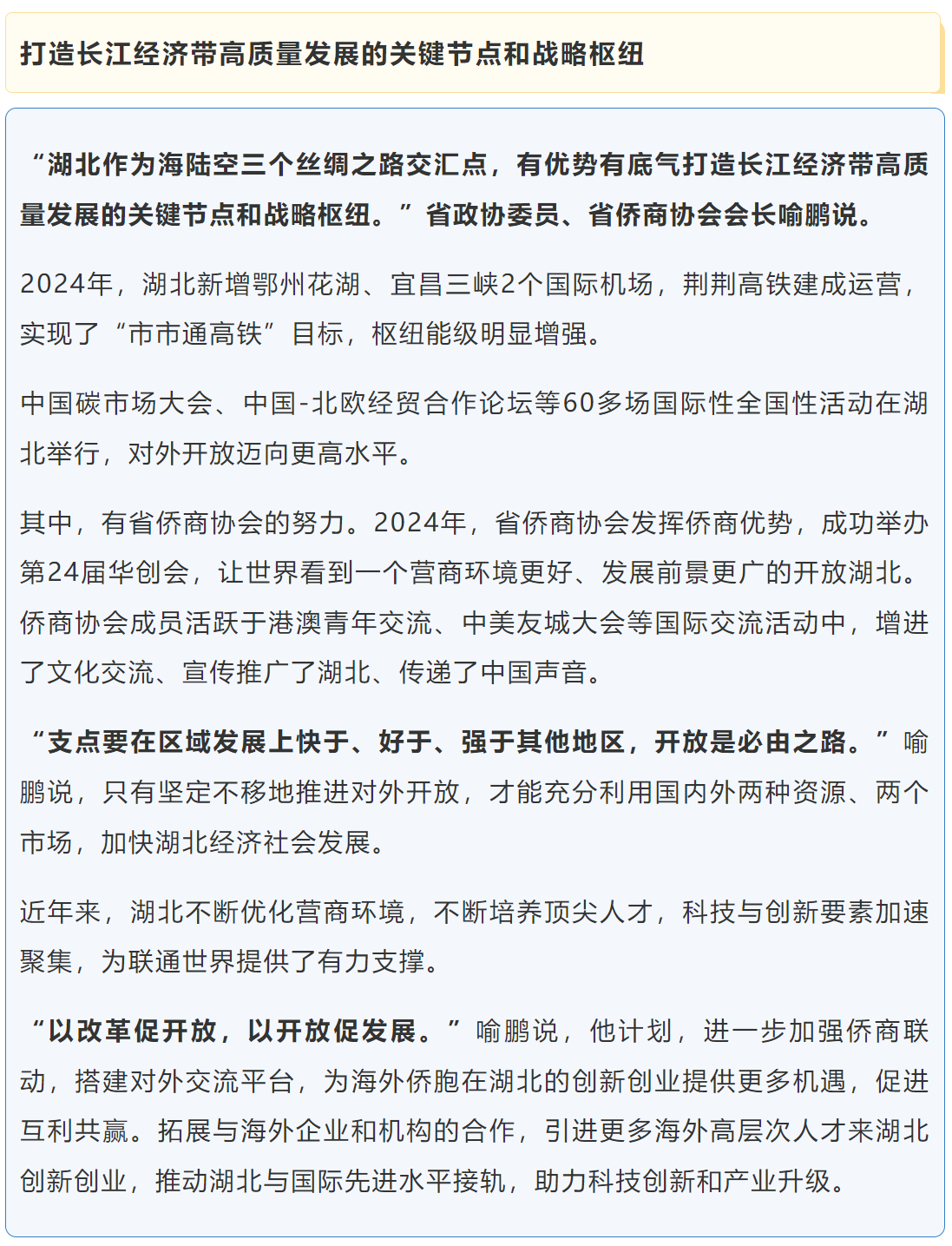 湖北省两会正在召开。在这样的时间节点,湖北发出明确信号:坚定不移沿着习近平总书记指引的方向,把全部工作向“支点建设”聚焦聚力,把“支点建设”的旗帜举得更高更稳。