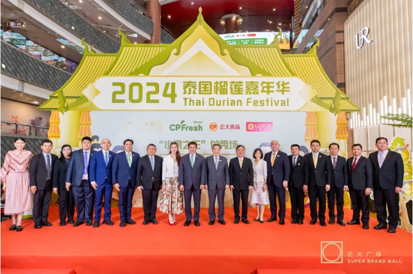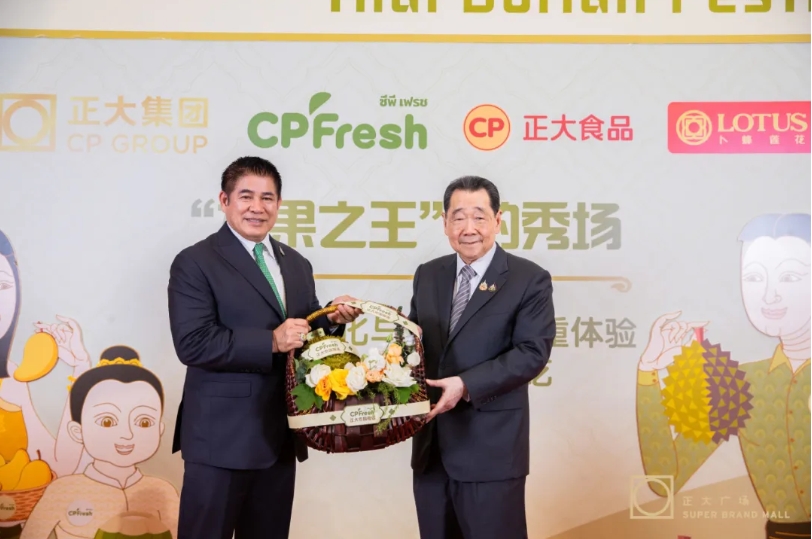 会谈结束后,代表团出席了正大榴莲嘉年华活动。该活动是中泰农业合作成果的一次精彩呈现,展现了泰国榴莲的独特魅力。活动现场,泰国水果、正大泰虾、泰国零食、正大鸡蛋等琳琅满目的正大食品吸引了大批消费者品尝与购买。泰国文化表演更是将活动氛围推向高潮,展现了泰国文化的独特风情。