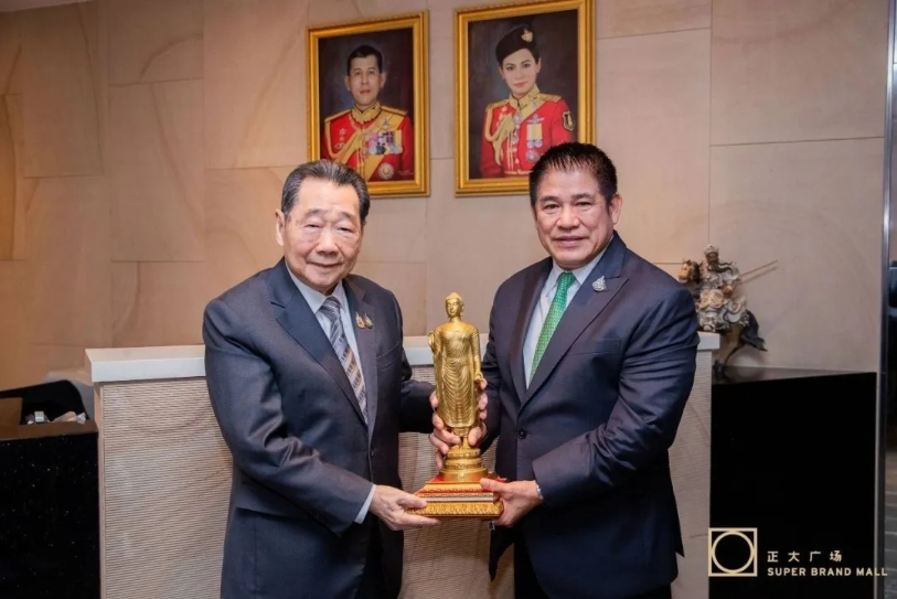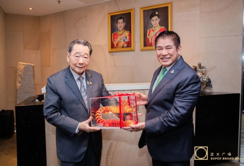 ▲正大集团资深董事长谢国民先生与泰国农业与合作社部部长塔玛纳先生互换礼物