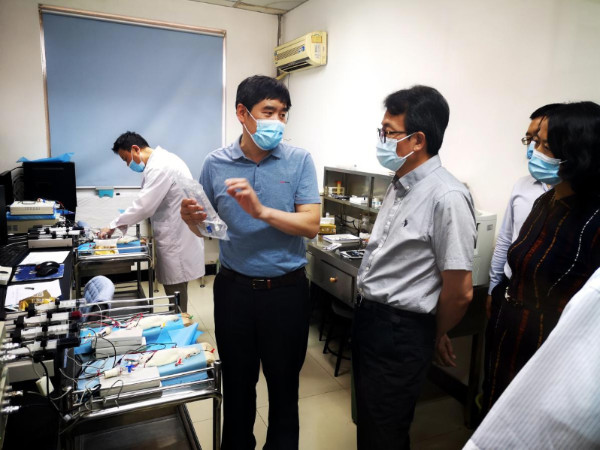 10日下午,李卓彬一行来到西北大学,实地考察了西北大学国家微检测系统工程技术研究中心,听取了“血液代用品”项目及实验室建设情况介绍,并与学校相关领导、项目研发团队座谈。
