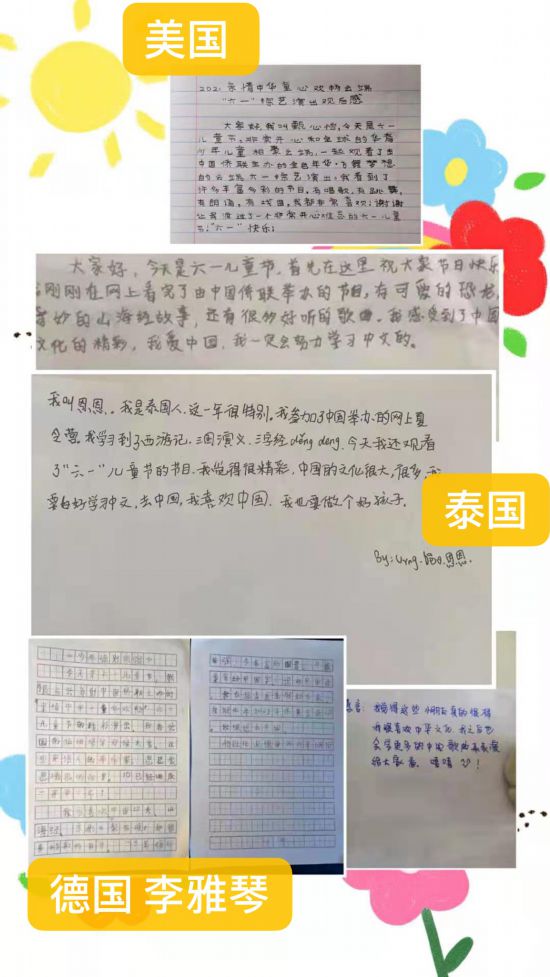 韩国大邱的石採然小朋友留言道,今天看了这场六一汇演我很有感触,我最喜欢的节目是昆曲《云手》和京剧《梨花颂》,还有武术《墨韵书香》,因为我特别喜欢中国传统文化。精彩的表演不仅吸引了我,更加深了我对祖籍国的热爱。