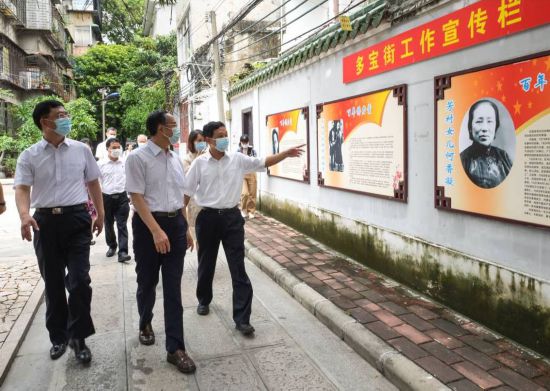 在荔湾区西关历史文化街区永庆坊,万立骏一行沿街考察了旧城改造、侨乡历史文化建筑修缮?;で榭?,并走进粤剧艺术博物馆,了解粤剧艺术传承和?;すぷ?。万立骏说,习近平总书记2018年考察永庆坊时强调,要让城市留下记忆,让人们记住乡愁。对侨来讲,故乡的老房子、老建筑、老街区最令人牵挂。乡音、乡戏、乡情最能打动人。要加强侨联信息传播和文化交流工作,通过拍摄视频、网络直播、办好夏令营、举办文化演出等多种形式,宣传侨乡历史,宣介侨乡新貌,弘扬侨乡文化,让海外侨胞记住乡愁,让华侨华人子女留下根脉。