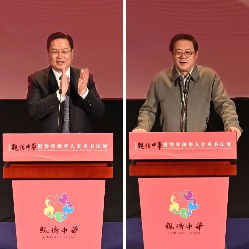 2月14日,由中国侨联主办的“亲情中华·第四届世界华侨华人美术书法展”在中华世纪坛开幕。中国侨联党组书记、主席万立骏出席开幕式并讲话。中国侨联党组成员、副主席程学源、连小敏,中国书法家协会副主席叶培贵,中国美术家协会副主席徐里等出席开幕式。