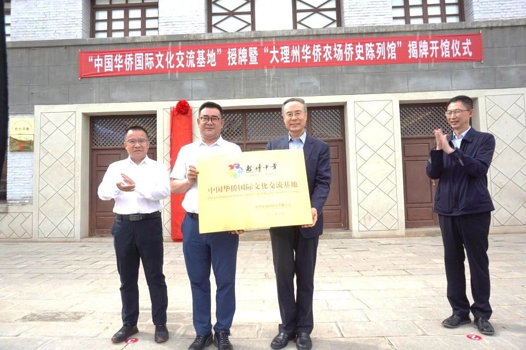 在宾川县金牛镇柳家湾华侨社区(原太和华侨农?。┯忍?,大理州和宾川县举行“中国华侨国际文化交流基地”授牌仪式暨大理州华侨农场侨史陈列馆揭牌开馆仪式。万立骏为基地授牌,参观华侨农场侨史展陈,详细了解当年创建华侨农场以及安置归难侨的情况。