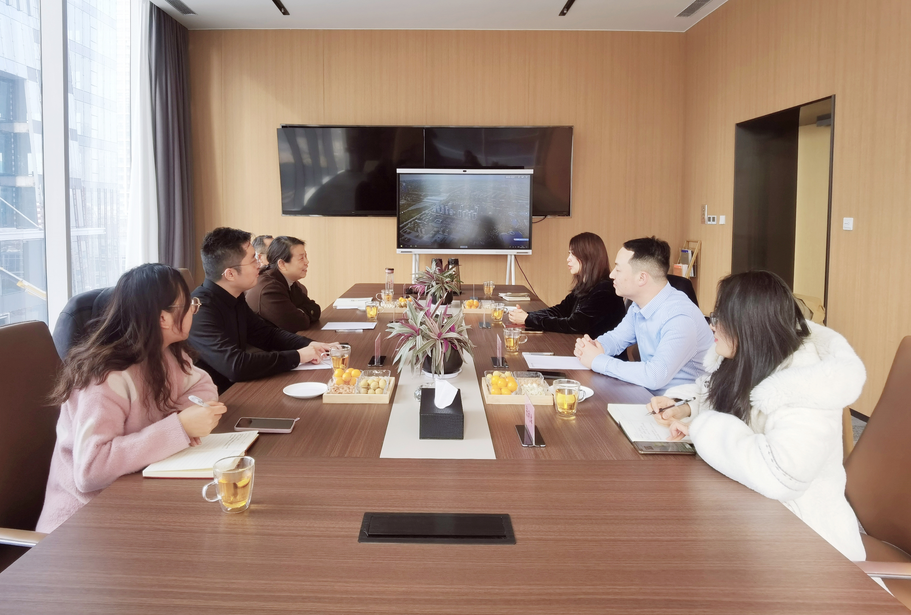 12月28日下午,信阳市侨联主席高丹丹、秘书长雷伟,信阳市侨商会副会长兼秘书长王晨旭莅临省侨商会调研座谈,省侨商会执行秘书长柴莉、副会长王培雷携会员部、宣传部热情接待一行。