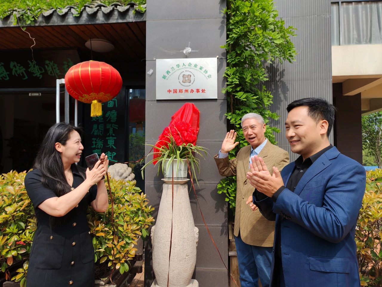在各位嘉宾的期待和共同见证下,吕剑、徐振鲁、刘东亚共同为“新西兰华人企业家协会中国郑州办事处”揭牌,标志着郑州办事处正式落成,这是新西兰华人企业家协会调整发展思路,不断提升协会在豫影响力,希望为家乡企业提供支持走出的坚定而务实的一步。