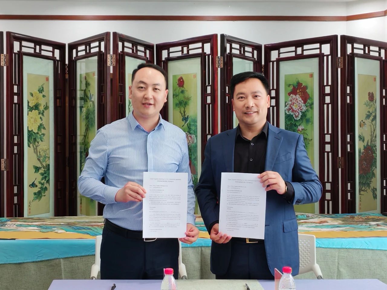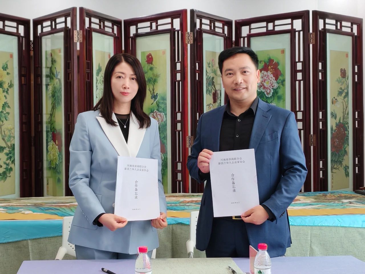 △刘东亚、柴莉分别代表新西兰华人企业家协会、河南省侨商联合会签订合作备忘录