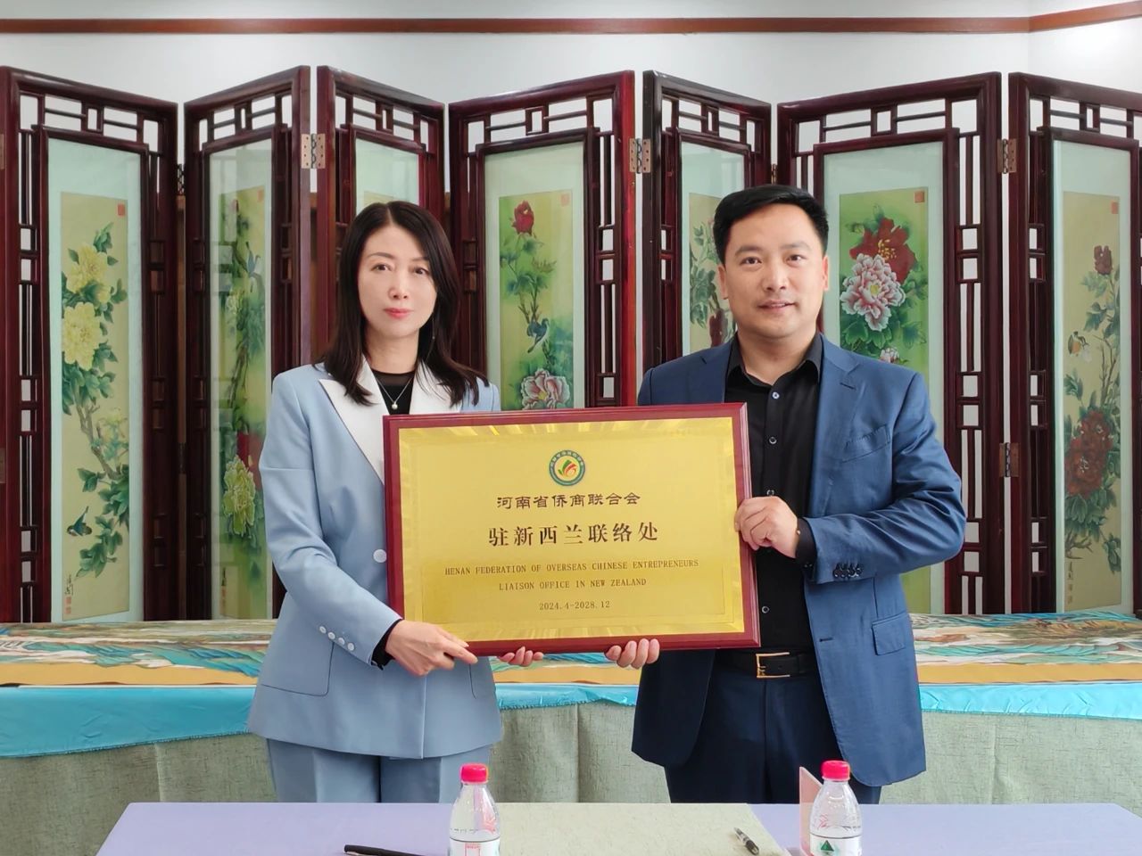 △柴莉为刘东亚授牌,河南省侨商联合会在新西兰华人企业家协会设立驻新西兰联络处,海外联络更加广泛