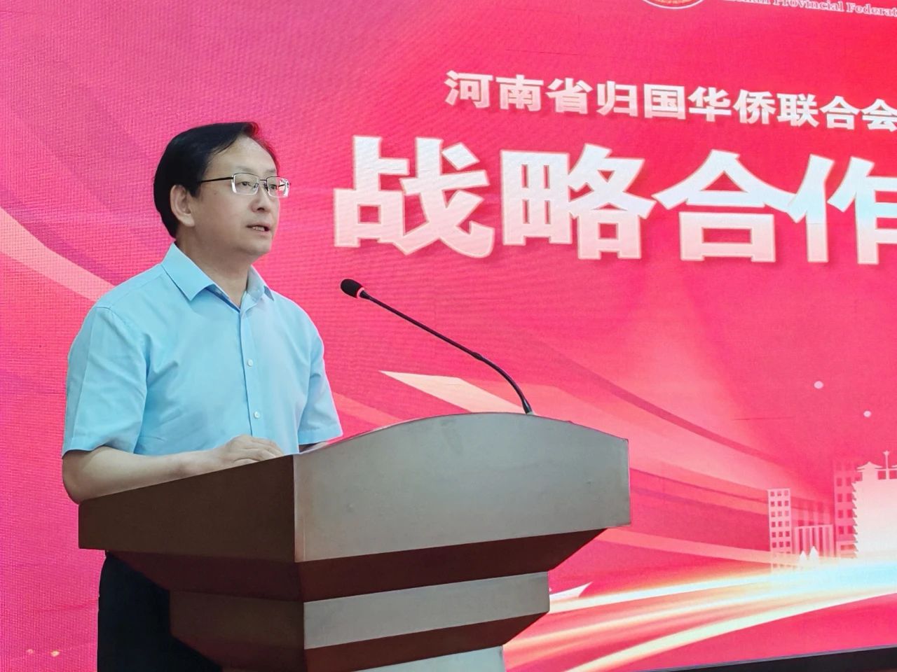 杨海强致辞表示,侨联是党创立和领导的人民团体、群众组织,是党和政府联系广大归侨侨眷和海外侨胞的桥梁纽带。近年来,省侨联坚持围绕中心、服务大局、服务侨胞,创新实施“五化”联动,全省侨联事业高质量发展取得了新成就,为推进中国式现代化建设河南实践做出了积极贡献。当前,河南省侨联正在积极拓展平台和渠道,服务侨商发展,加强海外联谊。河南邮政公司负责全省邮政通讯建设以及业务经营,具有广泛的覆盖面,通达全球,优势明显,一直以来与侨联有着深厚的合作渊源。河南省侨联与邮政公司建立战略合作关系,既是双方以习近平新时代中国特色社主义思想为指引,深入学习贯彻党的二十大和二十届三中全会精神的重要举措,也是双方坚持为大局服务和为侨服务相统一,立足长远、密切协作、形成合力的实际行动。希望两家单位以战略协议的签署为起点,互相支持,共同服务经济发展,围绕跨境电商、快递物流、货源地直采、海外仓资源等业务,促进侨商侨企、海外侨团和邮政公司的信息交流和资源共享,形成产业链对接机制,指导侨企、侨团走出去、请进来,不断为我省经济发展注入新动能。