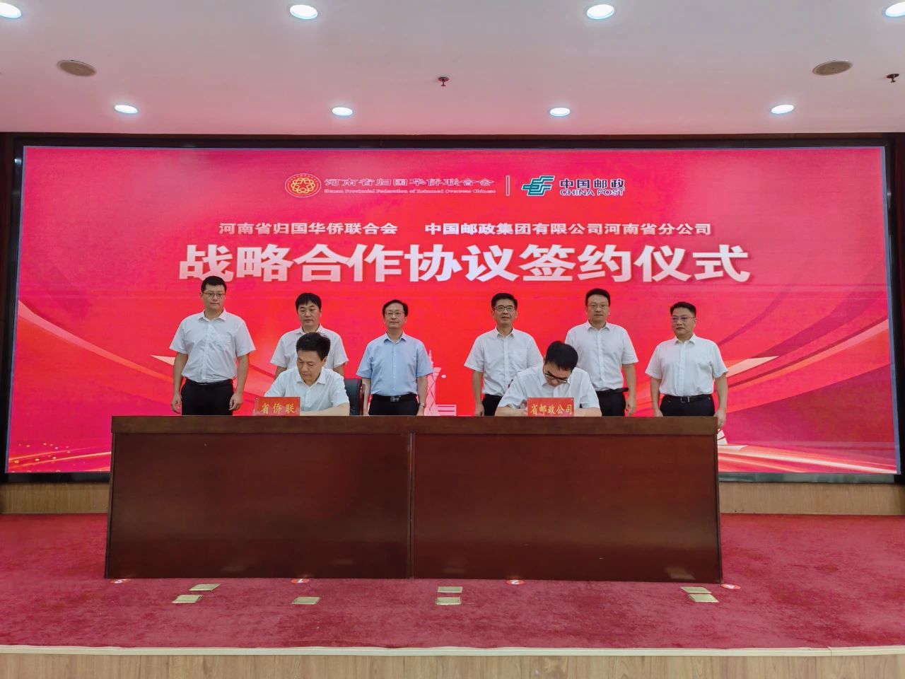 为深入学习贯彻党的二十大精神,认真落实全国第十一次侨代会部署,践行“以人为本、为侨服务”的宗旨,进一步细化暖侨联心举措,更好的服务侨资企业跨境贸易,7月24日,河南省侨联与河南省邮政公司联合举办战略合作协议签约仪式。省侨联党组书记、主席杨海强,党组成员、副主席刘智良,文化经济联络部部长邱建锋,权益保障部副部长胡忱;中国邮政集团有限公司河南省分公司党委书记、总经理熊勇武,党委成员、副总经理夏策敏,市场营销部总经理江文军,国际业务分公司总经理秦绪波等出席了本次活动?;疃上牟呙糁鞒?。