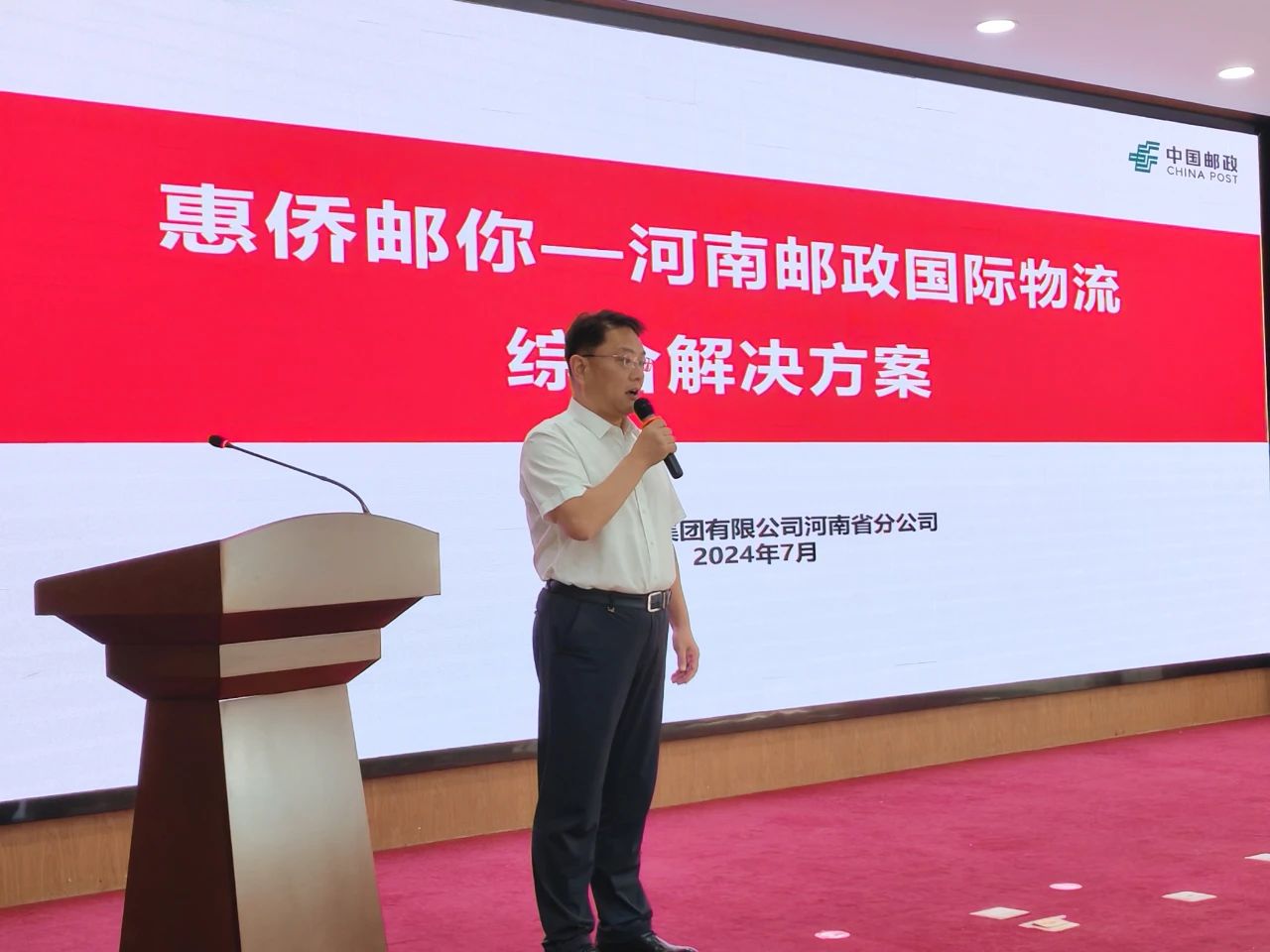 随后,秦绪波向与会人员介绍了河南邮政公司的基本情况、口岸优势,全面阐述了河南邮政国际物流综合解决方案,并分享了国际EMS(个人邮寄首选物流)、e邮宝(跨境轻小件明星产品)、e速宝(自主可控商业专线)、海外仓(半托管专属服务)、中速快运(制造业出海大件物流)五大优势产品。秦绪波表示,中国邮政已形成“邮件+商业快件+国际货运+海外仓”全产品物流解决方案,通达全球200多个国家和地区,产品最全、覆盖面最广,广泛服务个人寄递、跨境电商和制造业出海企业。