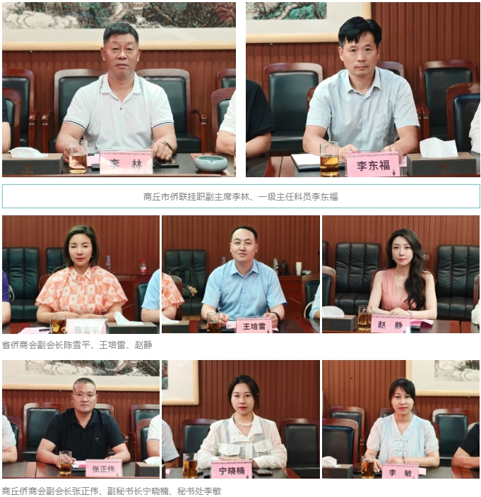 杨统一介绍了商丘市侨商会的情况,他表示,商丘市侨商会在社会各界的关心支持下,现今发展势头良好,活动组织比较积极,目前会员有160多人,大家彼此之间团结和谐。杨统一表示,商丘市侨商会非常关注省侨商会的动态,经常学习效仿省侨商会好的做法,这对商丘市侨商会的发展很有助益。未来,希望省侨商会与商丘市侨商会多互动、多走访,会员企业间多交流、多合作。