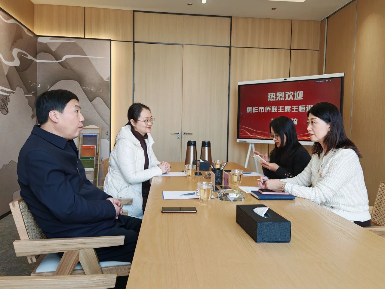 ,焦作市侨联党组书记、主席王恒进率队到访省侨商会,执行秘书长柴莉携宣传部负责人热情接待,双方座谈交流,共探合作发展之路。