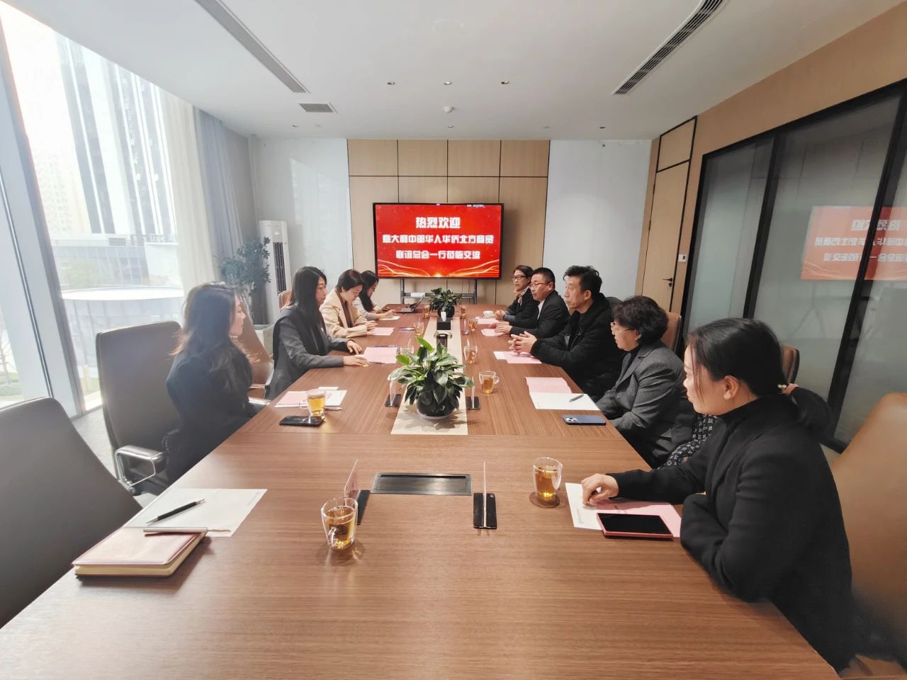 为加强商会之间的联系与合作,搭建更好的沟通交流平台,12月4日下午,意大利中部华人华侨北方商贸联谊总会会长金祝善、执行会长陈闽生、秘书长李红、监事长张疆秋、温州保蒙国际贸易有限公司总经理谢伟一行到访省侨商会,我会执行秘书长柴莉,副会长罗利、赵静,宣传部部长张利华热情接待,双方就两地产业经济发展情况进行座谈交流和分享。