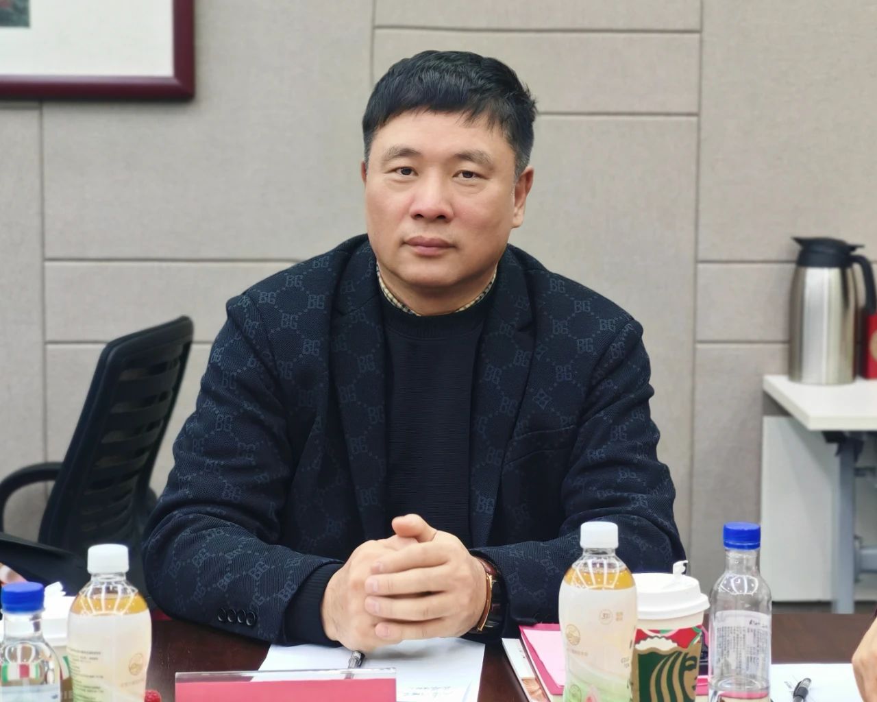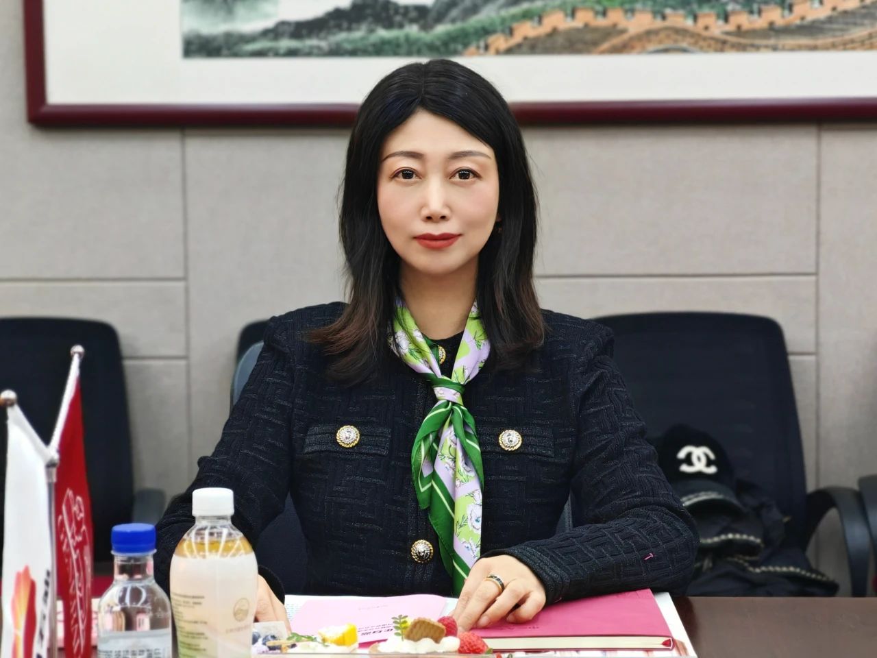座谈交流环节,柴莉作为会议主持人简要开场。她向周会长的精心准备及接待表示感谢,并介绍了此次参会的主要嘉宾。她还简要汇报了第四季度商会重点工作,包括近期商会主办的郑交会境外展、东盟专场交流会等活动,与海外商协会、组织的联系沟通情况,近期换届筹备情况,为大家呈现了近期商会的重点成果和发展情况。她表示,今天借助走访中意人寿的契机,各位会长齐聚一堂,召开本年度第四季度会长办公会,希望大家多多交流,共同谋划下阶段工作;同时商会正值换届筹备的关键时期,希望与各位会长携起手来,大家上下一心,共同把商会做出品牌、做出影响。
