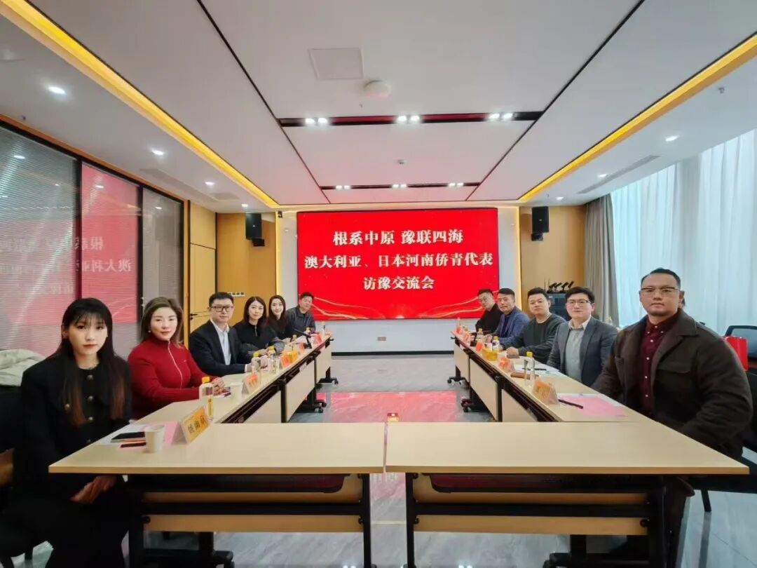 1月8日上午,澳大利亚河南青年会、澳洲华人华侨联谊会、澳洲河南同乡会、日本河南同乡会的青年企业家到访河南省侨商联合会,与我会青委会成员面对面座谈交流,以乡情为纽带,以合作促发展,共绘豫澳日侨界协同发展的崭新蓝图。
