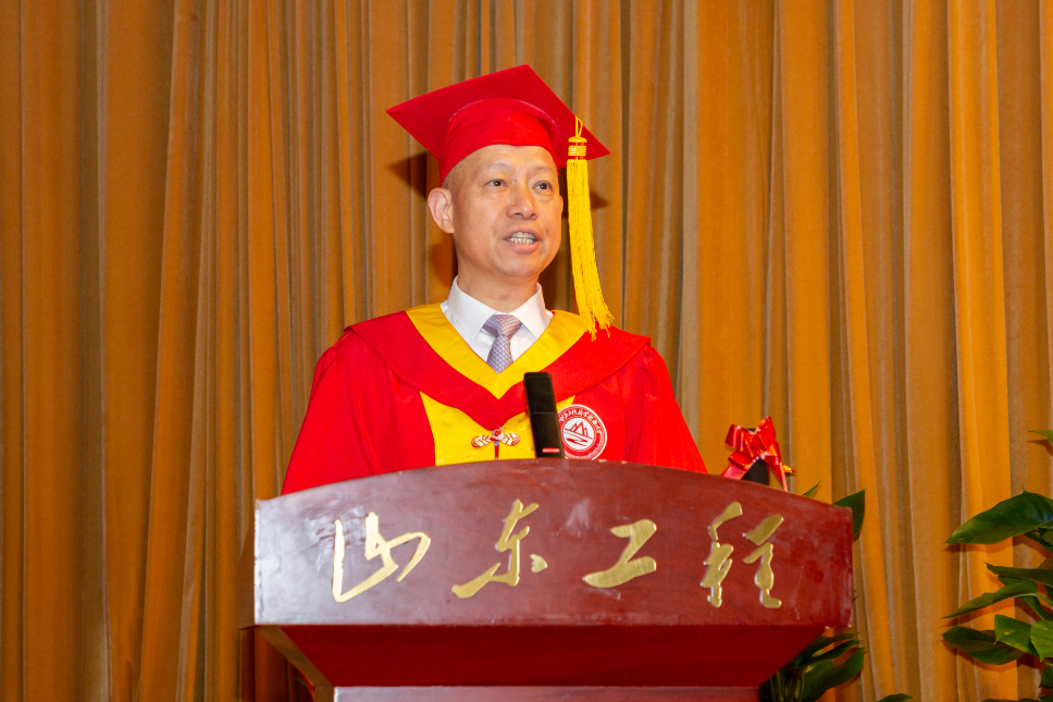 在即将开启新征程的光荣时刻,他希望毕业生们:一是牢记学校和老师们的期望,不要忘记同窗友情,不要放弃理想信念,山东工程永远是你们最温暖的港湾;二是不论走到哪里,不论在什么岗位,都要做到充满爱心、敬业乐群、干事创业、奉献社会,努力成为可堪大用、能负重任的栋梁之材;三是职业教育既能“顶天”,又能“立地”,广大毕业生们要乘时代浪潮,披荆斩棘翱翔,早日成长为各自领域的大国工匠。