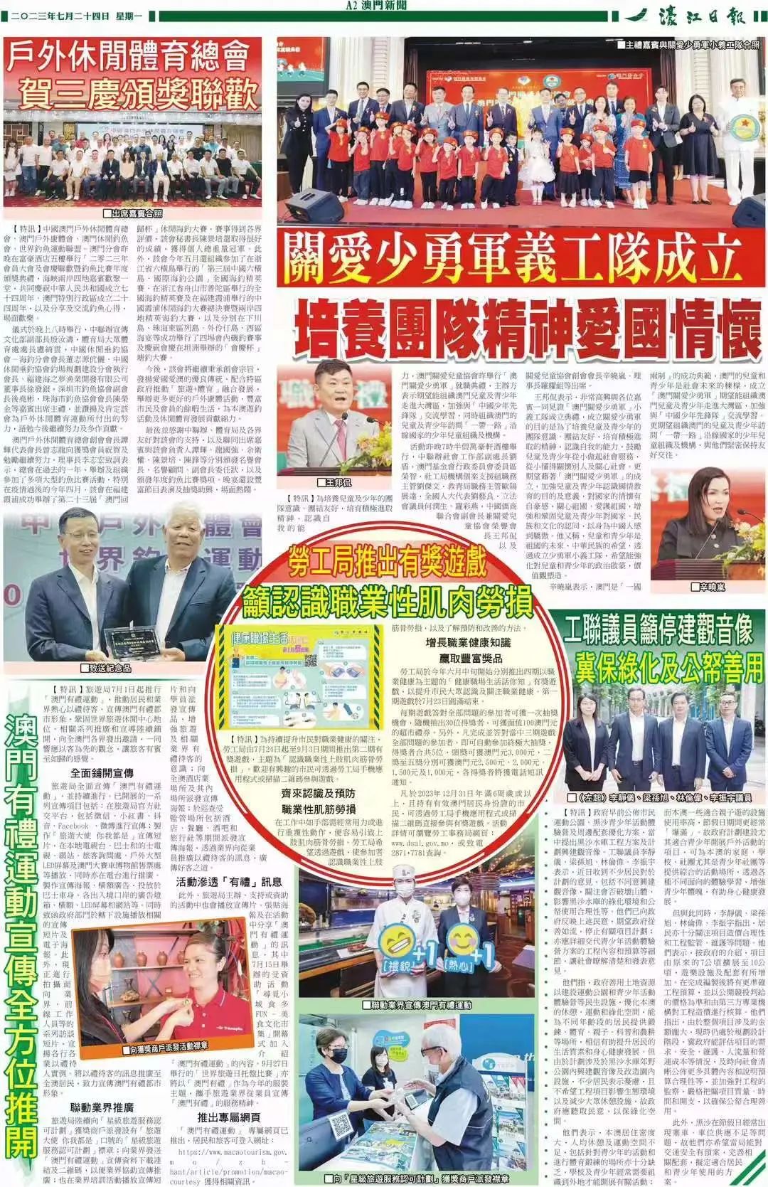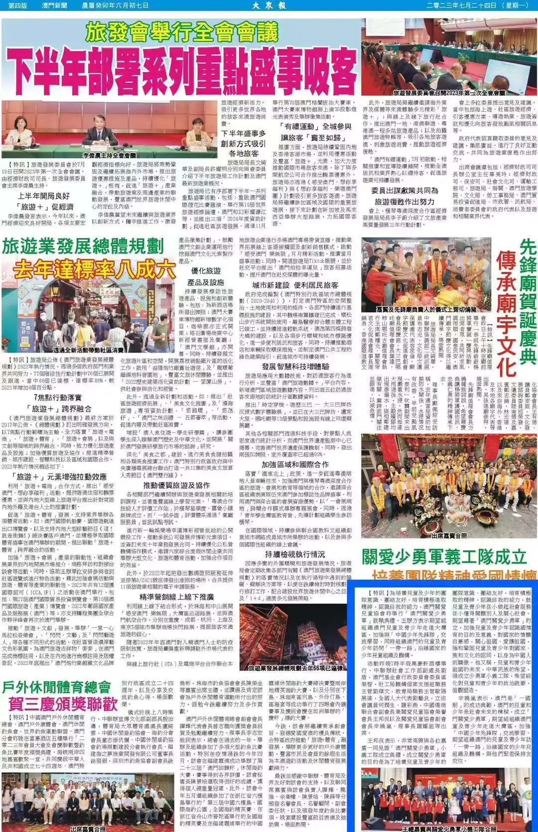 7月23日晚上,澳门关爱儿童协会举行“澳门关爱少勇军”成立典礼。中国侨商联合会副会长、合肥市侨商联合会会长、澳门关爱儿童协会荣誉会长、阳光医疗集团董事长王邦侃受邀出席活动并发表致辞。本次活动受大众报、濠江日报等新闻媒体的广泛关注与报道。
