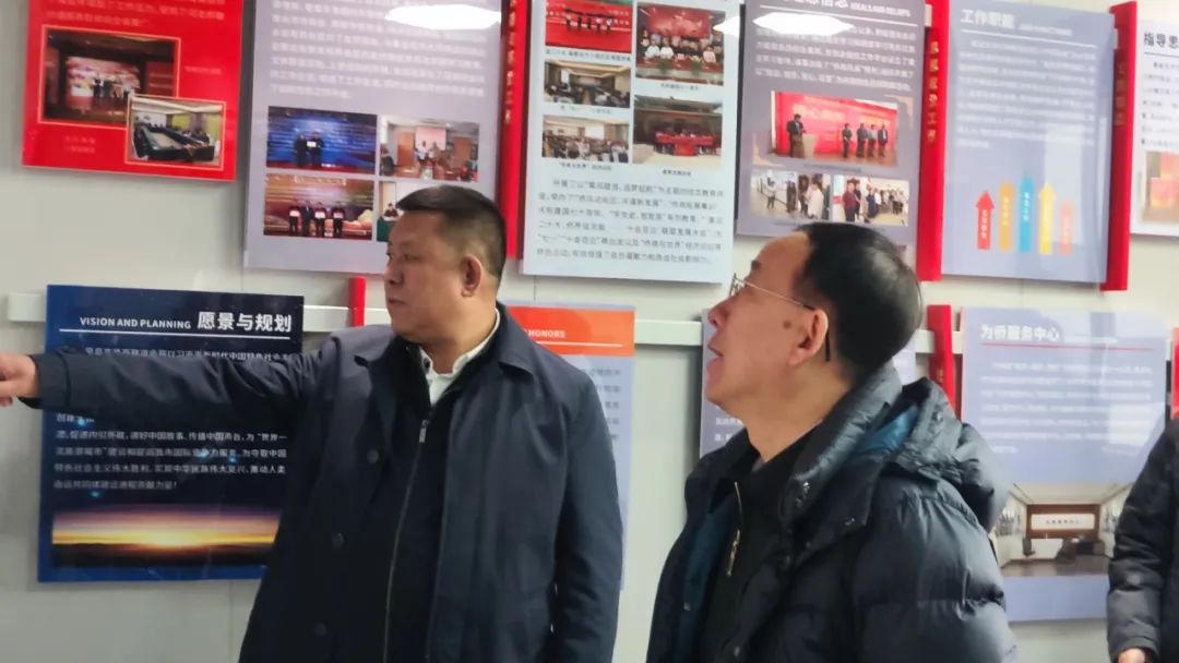 闫五一主席等市政协领导首先视察了侨商大厦会议室、员工食堂、共享茶室等配套设施。侨商会会长杨潇向与会领导简要介绍了侨商大厦建设成就和远景规划。