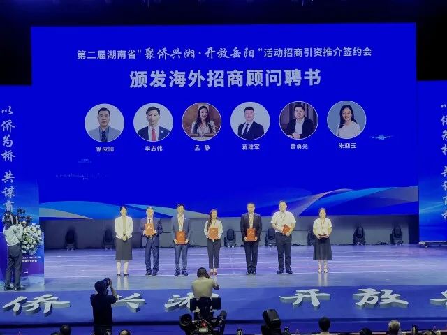 (5月30日上午,岳阳市为6位海外招商顾问颁发聘书。)