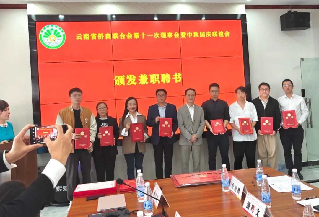 由尹元江会长,向谢介民、田坤、陈俞帆、孙朝阳、罗朝翔、杨云森、潘晖文、孙懋津、李义芳、明丽、江剑锋等11位热心服务侨商的企业代表,发放了兼职副秘书长《聘书》。