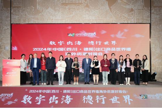 10月24日,2024年中国(四川·德阳)出口商品世界播海外资源对接会在德阳文德国际会展中心成功举行。本次活动由四川省商务厅指导,德阳市商务局主办,德阳市侨联、德阳市侨商联合会协办。四川自贸办专职副主任吴舸、德阳市人民政府副市长王洪出席并致辞。四川省侨商联合会常务副会长、德阳市侨商联合会会长梁双庆,四川省侨商联合会副会长、俄罗斯及独联体国家四川商会会长曾爱国,四川省侨商联合会理事钟澎俊以及省内各跨境电商综试区和商务部门、德阳市级相关部门、各区(市、县)及相关商贸物流、跨境电商企业负责人等共200余人参会。