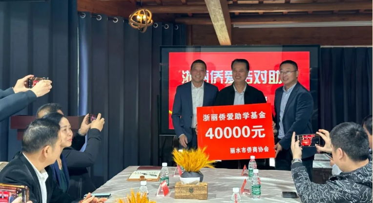 在随后举行的“浙丽侨爱”结对助学捐赠仪式上,丽水市侨商会捐赠4万元助学资金,用于资助民族乡村学校的困难学子。